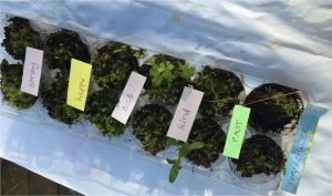 Place the seeds into an egg carton and water.